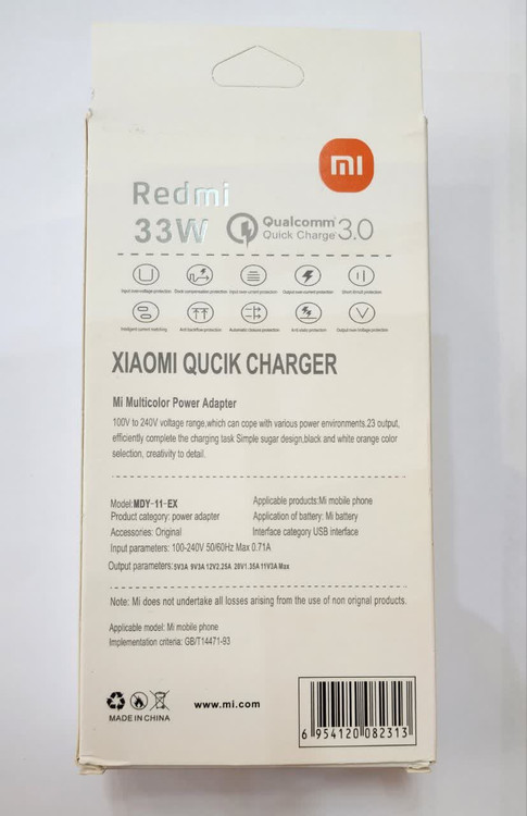 این شارژر از گوشی های پرچمدار شیائومی چون مدل های پوکو، بلک شارک، می 10، نوت 9 پرو و سایر گوشی ها با باتری بزرگ پشتیبانی می کند و همچنین می تواند سایر گوشی های هوشمند را ساپورت کند. شارژر 33 وات اصلی شیائومی MDY-11-EX به همراه کابل فابریک یک محصول هوشمند ضرروری در بین انواع گجت شیائومی می باشد. سازگاری مناسب: این مدل مخصوص گوشی های پرچمدار جدید طراحی و ساخته شده است و یک شارژ امن بدون نگرانی را برای کاربر تضمین می کند. جریان شارژ 3A: جریان شارژ تا بالای 3000 میلی آمپر ساعت می باشد که با پاور 33 وات، سازگار با بسیاری از مدل ها می باشد. اتصال پایدار و محکم: شارژر 33 وات اصلی شیائومی MDY-11-EX ابعاد مناسبی دارد و با قدرت بالایی شارژ می کند. سری شارژر به خوبی در شارژ دیواری فیت می شود و همچنین کانکتور کابل اتصال مستحکمی دارد. این شارژر قادر است گوشی نوت 10 پرو شیائومی با ظرفیت 5300 میلی امپر رو طی زمانی حدود یک ساعت فول شارژ کند که در نسل های قبلی گوشی که همون شارژ سریع Quoick 3 بود که می توانست یک باتری حدودا 3000 میلی امپر را ظرف یک ساعت و نیم حدودا شارژ کند.